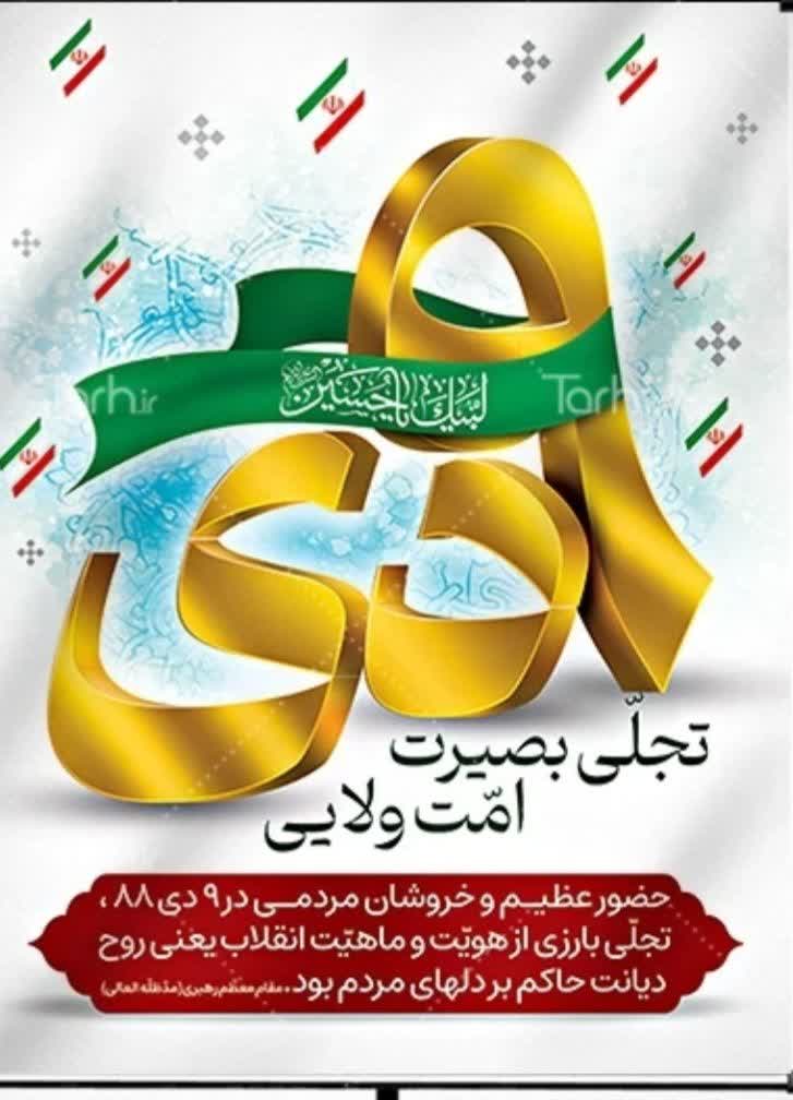 ۹ دیماه یادآور حماسهای بزرگ و ماندگار در تاریخ انقلاب اسلامی است؛ روزی که مردم ایران با بصیرت، ایمان و ولایتمداری خود، بار دیگر پایبندیشان به آرمانهای امام و رهبری را به نمایش گذاشتند.